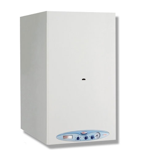 Cazan mural pentru incalzire si preparare apa calda menajera echipat cu sistem „AQUA PREMIUM”.