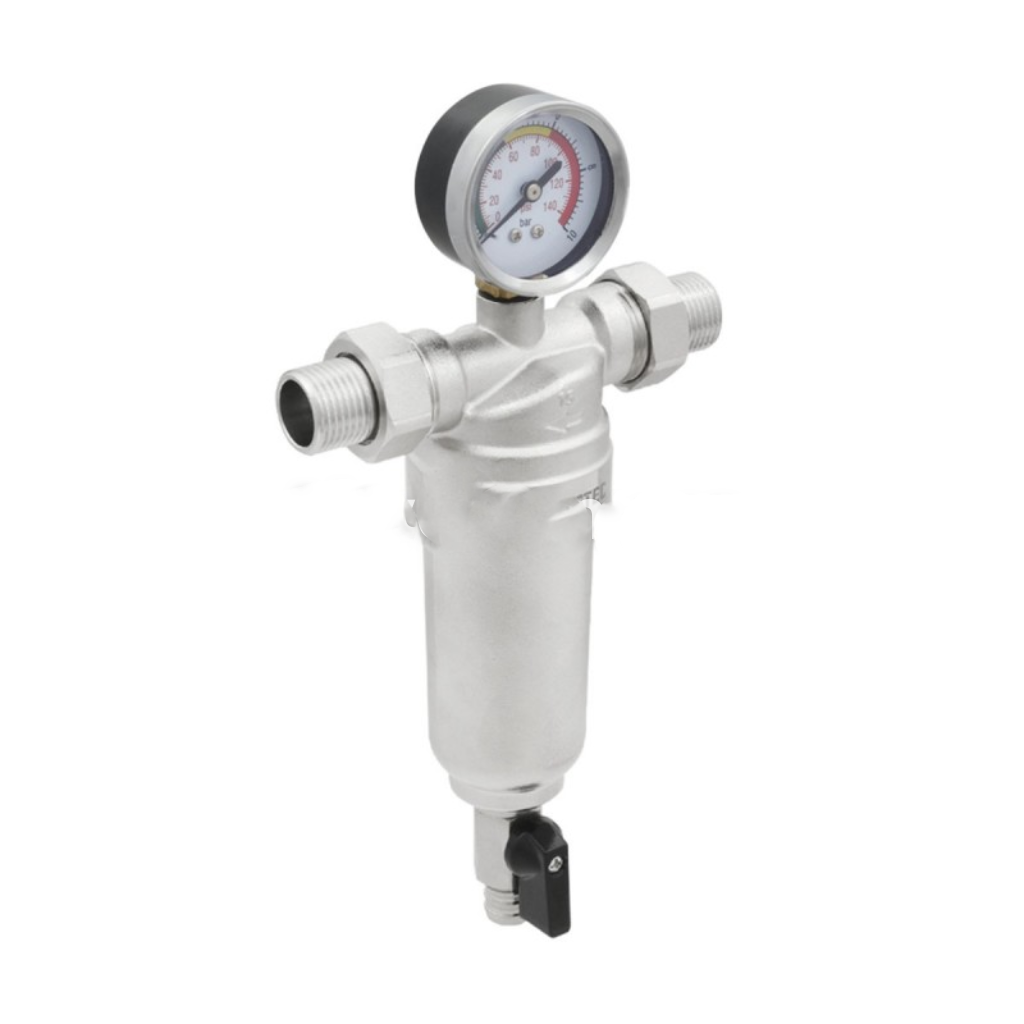 Filtru autocuratator RAFTEC 1/2 pentru apa rece cu manometru alama nichel RMCF01