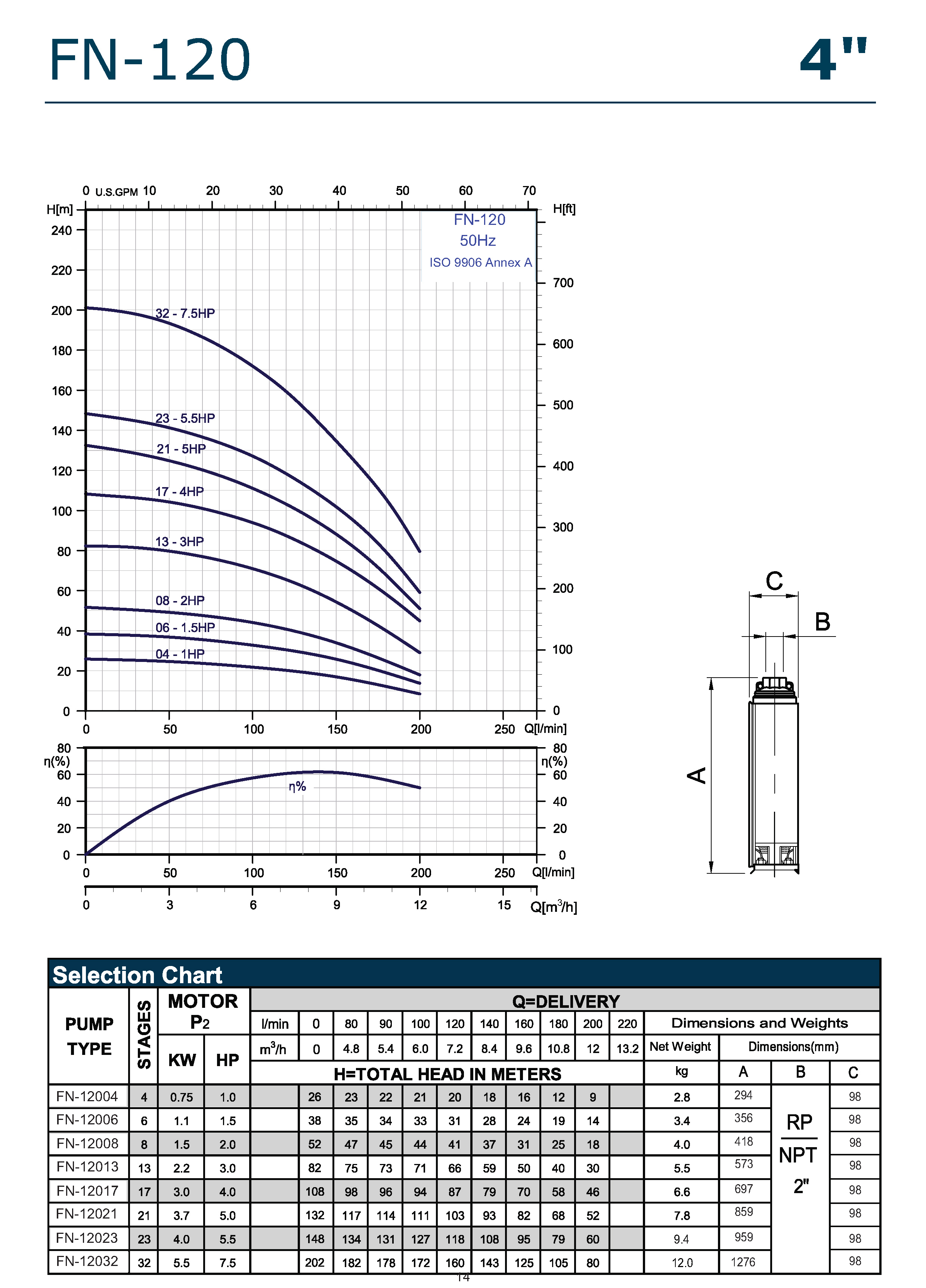 Pompa submersibila APD 4" FN 12032 Kw 5,50 HP 7,50 2"